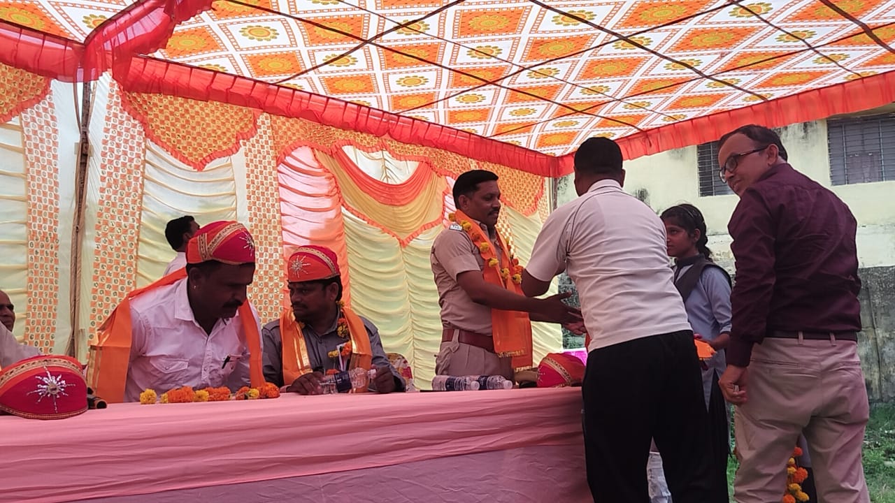 राजेंद्र कुमार कलाल सेमारी थाना अधिकारी गोपाल कृष्ण परमार कस्तूरबा गांधी बालिका विद्यालय पहुंचे कार्यक्रम की शुरुआत में मुख्य अतिथि एवं विशिष्ट अतिथि का पगड़ी उपना एवं तिलक कर स्वागत किया