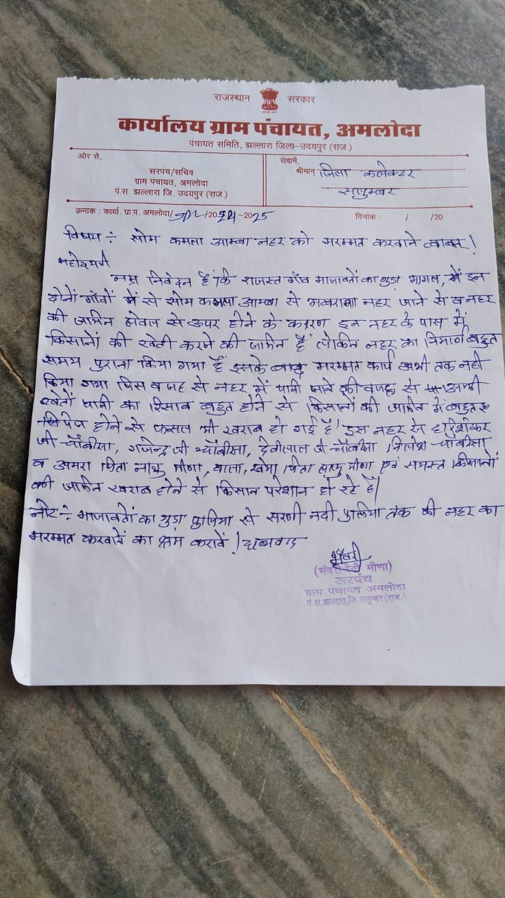 सलूम्बर जिले में राजस्त गाँव माजावतों का बड़ा भागल – ग्रामीण क्षेत्रों में सिंचाई व्यवस्था प्रभावित होने से किसान गंभीर परेशानी का सामना कर रहे हैं। सोम कमला आम्बा से भबराना तक बनी नहर पुरानी होने के कारण जामन लेवल से ऊपर आ चुकी है। नहर के दोनों ओर किसानों की खेती योग्य भूमि स्थित है, लेकिन वर्षों से नहर की मरम्मत नहीं होने के कारण लगातार पानी रिसाव हो रहा है।