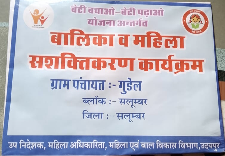सलूंबर। महिला अधिकारिता विभाग सलूंबर के निर्देशन में चल रहे 100 दिवसीय बाल विवाह मुक्त भारत अभियान के तहत ग्राम पंचायत गुडेल में जागरूकता कार्यक्रम आयोजित हुआ। कार्यक्रम का नेतृत्व पंचायत की साथीन कमला मेघवाल ने किया।