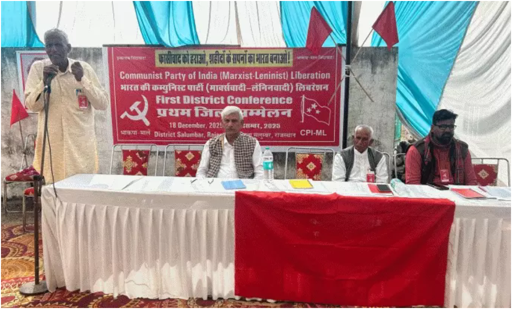 सलूंबर। भारतीय कम्युनिस्ट पार्टी (मार्क्सवादी–लेनिनवादी) का प्रथम जिला सम्मेलन देर शाम कृषि मंडी के समीप स्थित एक निजी हॉल में सफलतापूर्वक आयोजित किया गया। सम्मेलन में संगठनात्मक मजबूती और आगामी कार्यक्रमों पर विस्तार से चर्चा की गई।