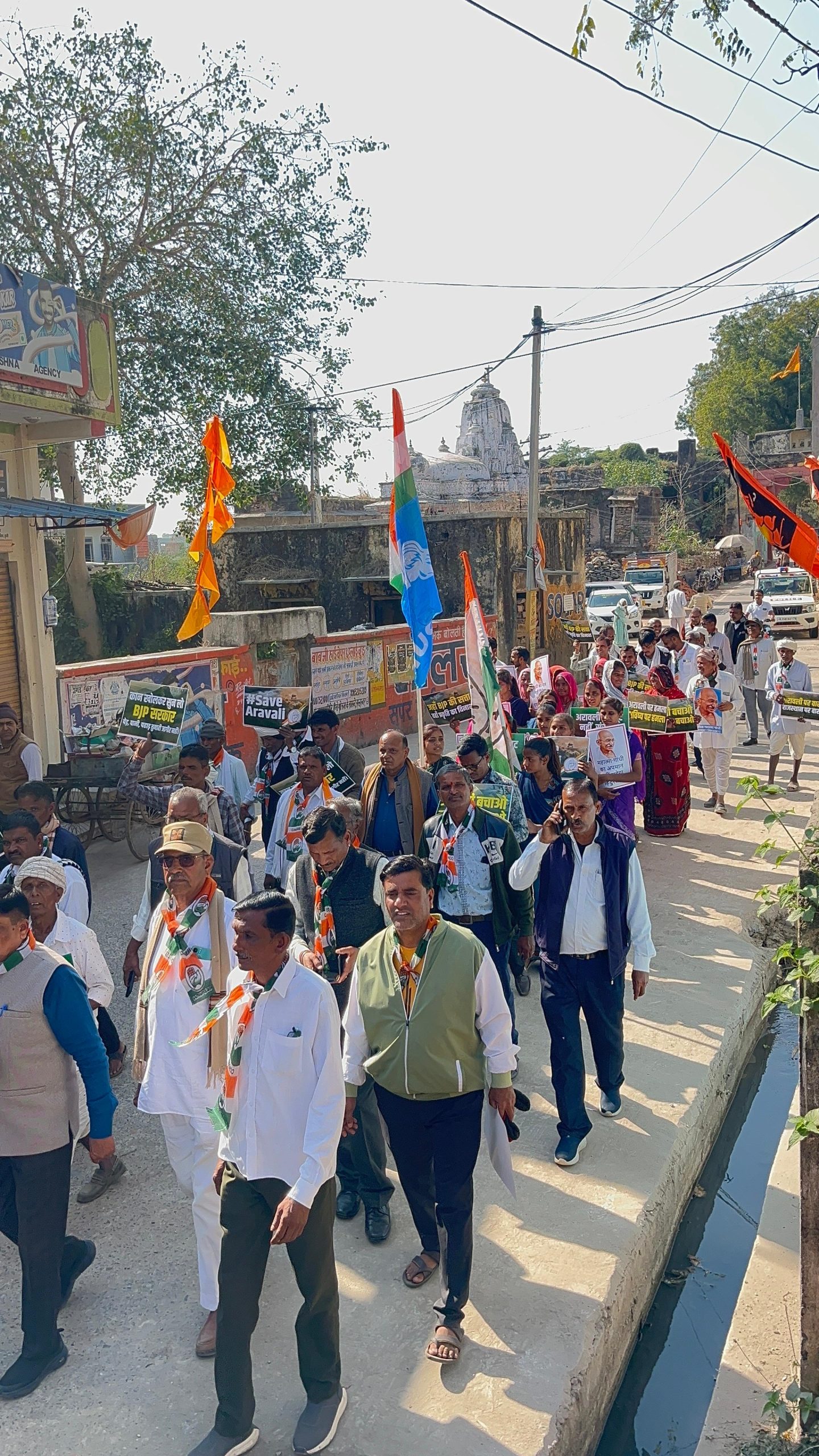 इसके पश्चात ज़िला मुख्यालय से केन्द्र एवं राज्य सरकार के खिलाफ आक्रोश रैली निकाली गई। रैली के दौरान कार्यकर्ताओं ने मानव शृंखला बनाकर अरावली क्षेत्र में 100 मीटर के आदेश तथा मनरेगा योजना का नाम परिवर्तन करने के फैसले का विरोध किया। रैली कांग्रेस ज़िला मुख्यालय से प्रारंभ होकर नगर के मुख्य आबादी क्षेत्रों से होती हुई गांधी चौक पहुँची, जहाँ ज़िला अध्यक्ष परमानंद मेहता ने सरकार की नीतियों की कड़ी