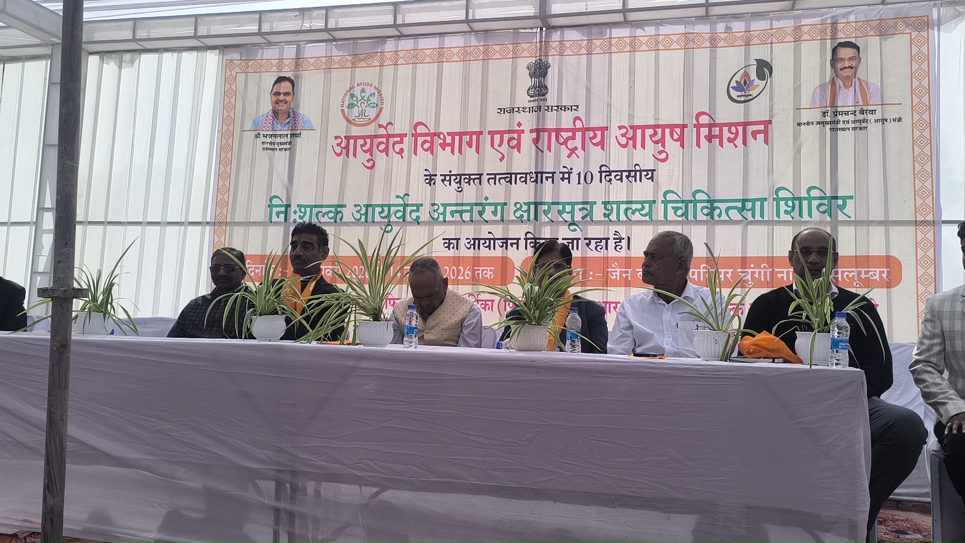 सलूंबर आयुर्वेद विभाग एवं राष्ट्रीय आयुष मिशन के तत्वावधान में जैन बोर्डिंग, सलूंबर में आयोजित 10 दिवसीय निशुल्क आयुर्वेद शल्य एवं चिकित्सा शिविर का शुभारंभ हर्षोल्लास के साथ किया गया। शिविर का उद्घाटन आयुर्वेद विभाग के उपनिदेशक डॉ. राजीव भट्ट, सहायक निदेशक भानुकुमार जैन, नेता प्रतिपक्ष प्रभूलाल जैन एवं महावीर इंटरनेशनल के जडावचंद जैन द्वारा किया गया।