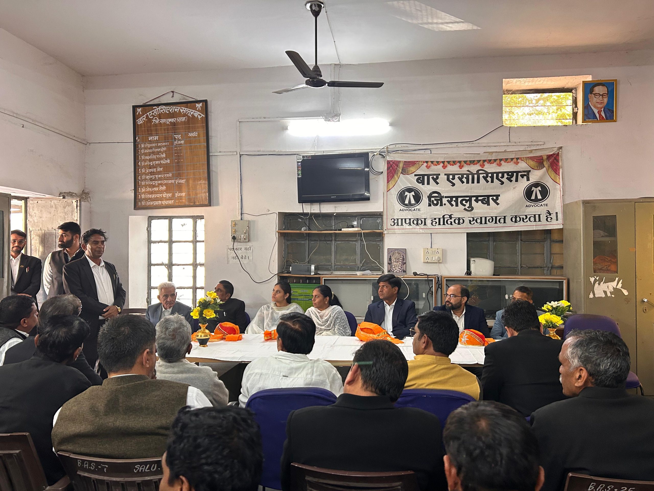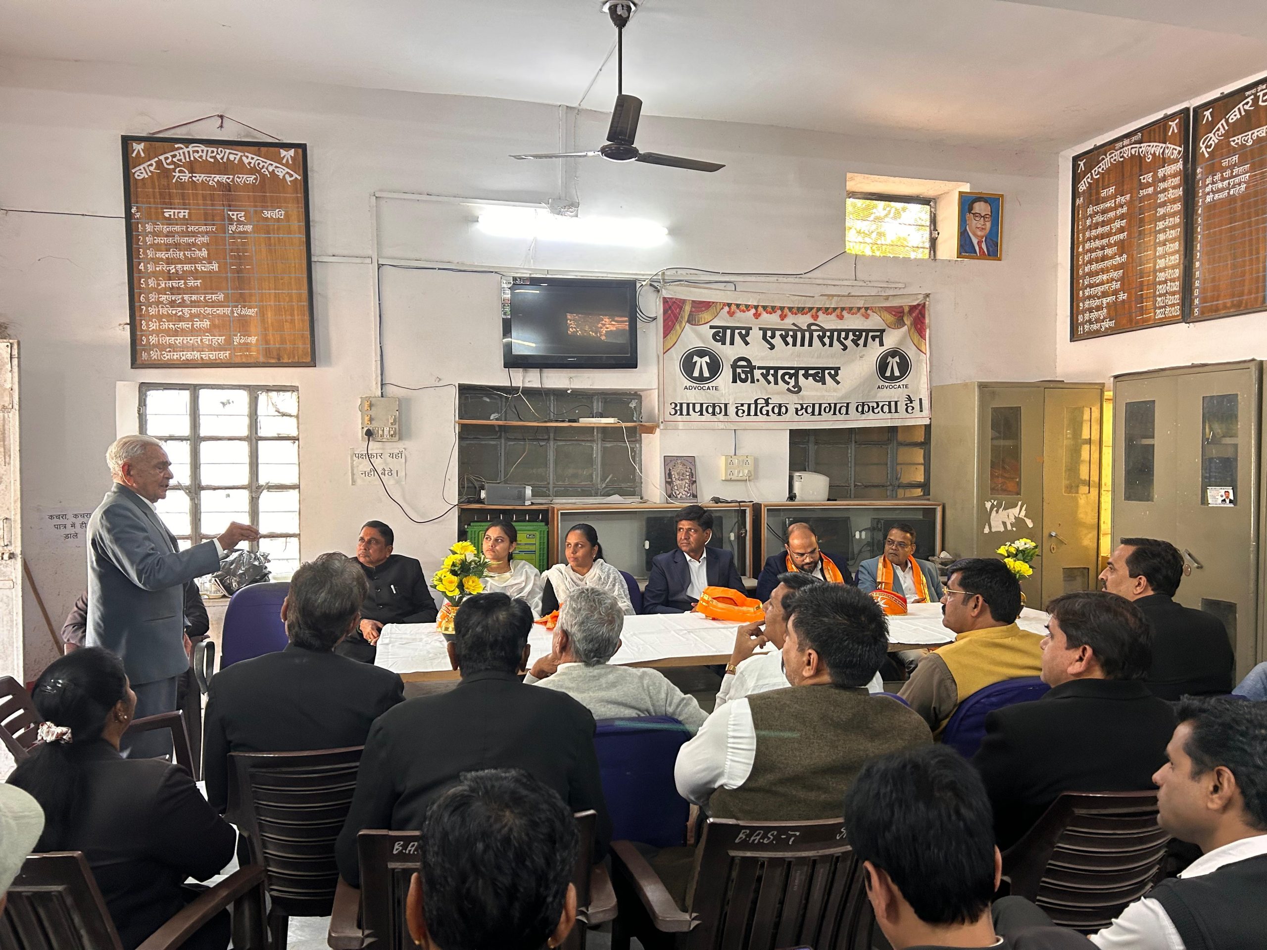 इस अवसर पर बार एसोसिएशन सलूंबर के संरक्षक गोविंद लाल डांगी, परमानंद मेहता, बार अध्यक्ष संजय मेहता, गोपाल चौबीसा, प्रभुलाल मीणा, सोहनलाल चौधरी, वीरेंद्र पटेल, गणेश मेहता, दिनेश जैन, सुरेश पूरी, सी.पी. मेहता, राकेश प्रजापत, दीपेंद्र सिंह चौहान, चंद्रशेखर मेहता, राकेश जैन, डूंगर मीणा, ग्रिजेश ताजावत सहित अनेक अधिवक्ता मौजूद रहे।