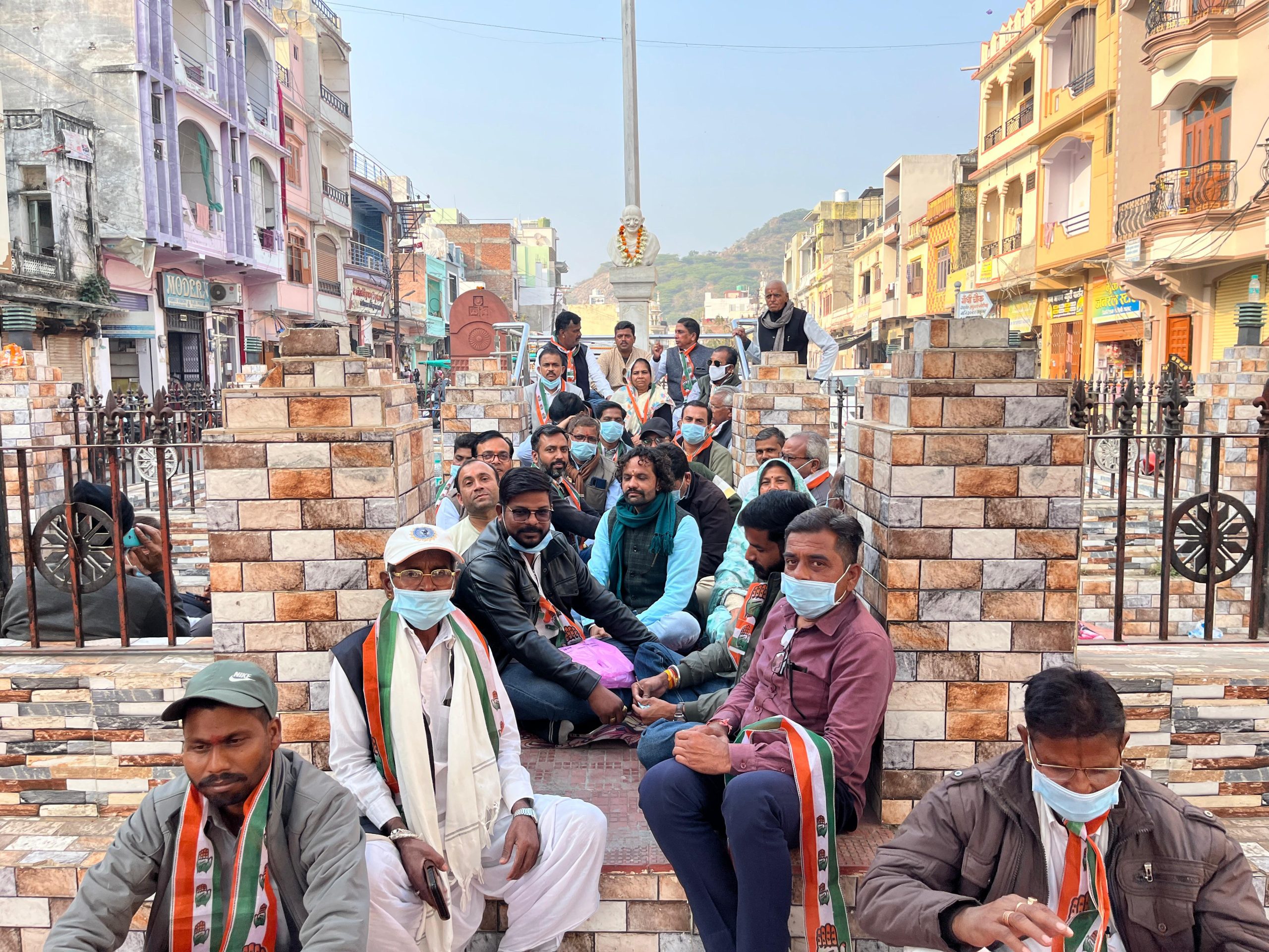 सलूम्बर। अखिल भारतीय कांग्रेस कमेटी एवं प्रदेश कांग्रेस कमेटी राजस्थान के निर्देशानुसार महानरेगा योजना का नाम बदलने एवं उसके मूल स्वरूप में परिवर्तन के विरोध में रविवार को देशभर में विरोध प्रदर्शन किए गए। इसी क्रम में जिला कांग्रेस कमेटी सलूम्बर के नेतृत्व में सलूम्बर नगर स्थित गांधी चौक पर कांग्रेस कार्यकर्ताओं एवं पदाधिकारियों द्वारा चार घंटे का मौन उपवास रखा गया।