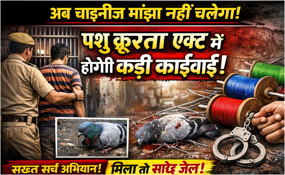 पुलिस व प्रशासन के साथ मिलकर सघन तलाशी अभियान चलाया जाएगा दुकानों, गोदामों व बाजारों में छापेमारी की जाएगा प्रतिबंधित चाइनीज मांझे का स्टॉक जब्त किया जाएगा दोषियों पर पशु क्रूरता निवारण अधिनियम 1960 सहित अन्य धाराओं में केस दर्ज होगा