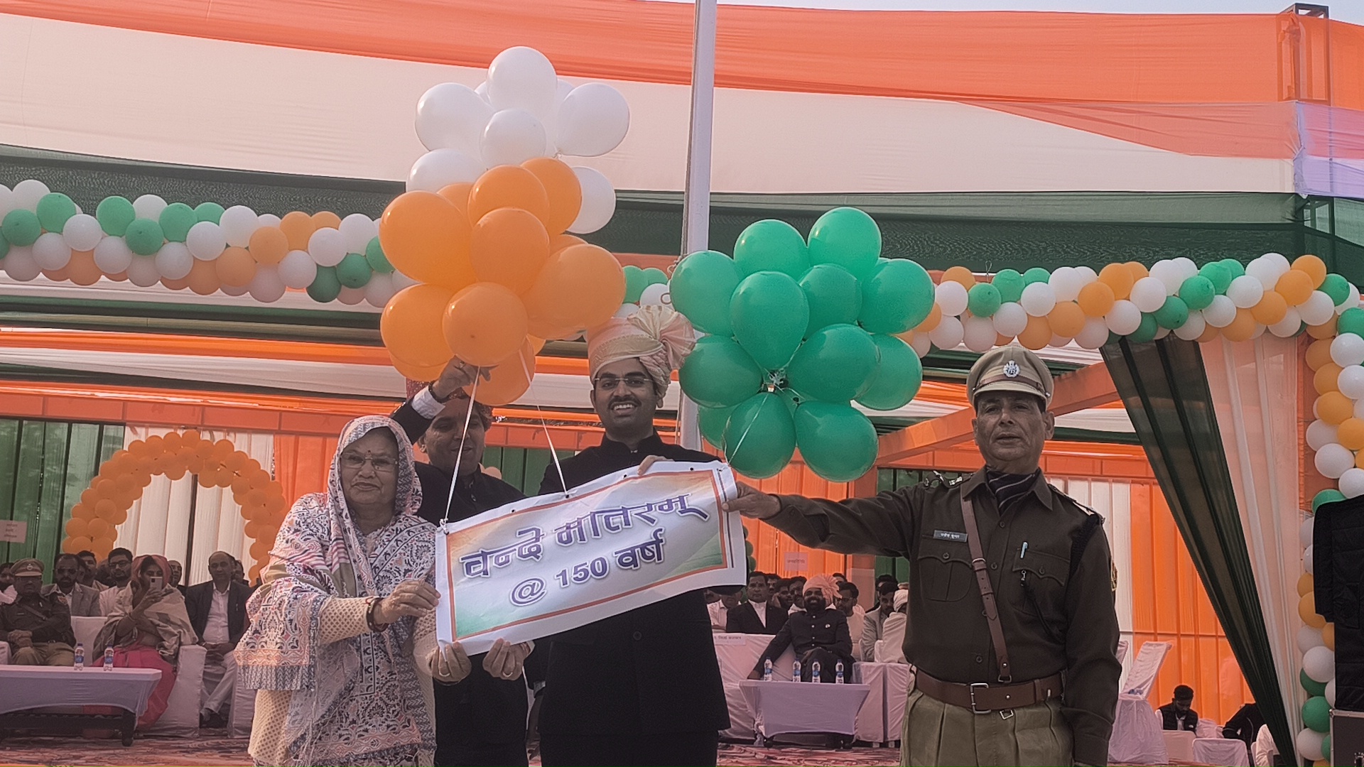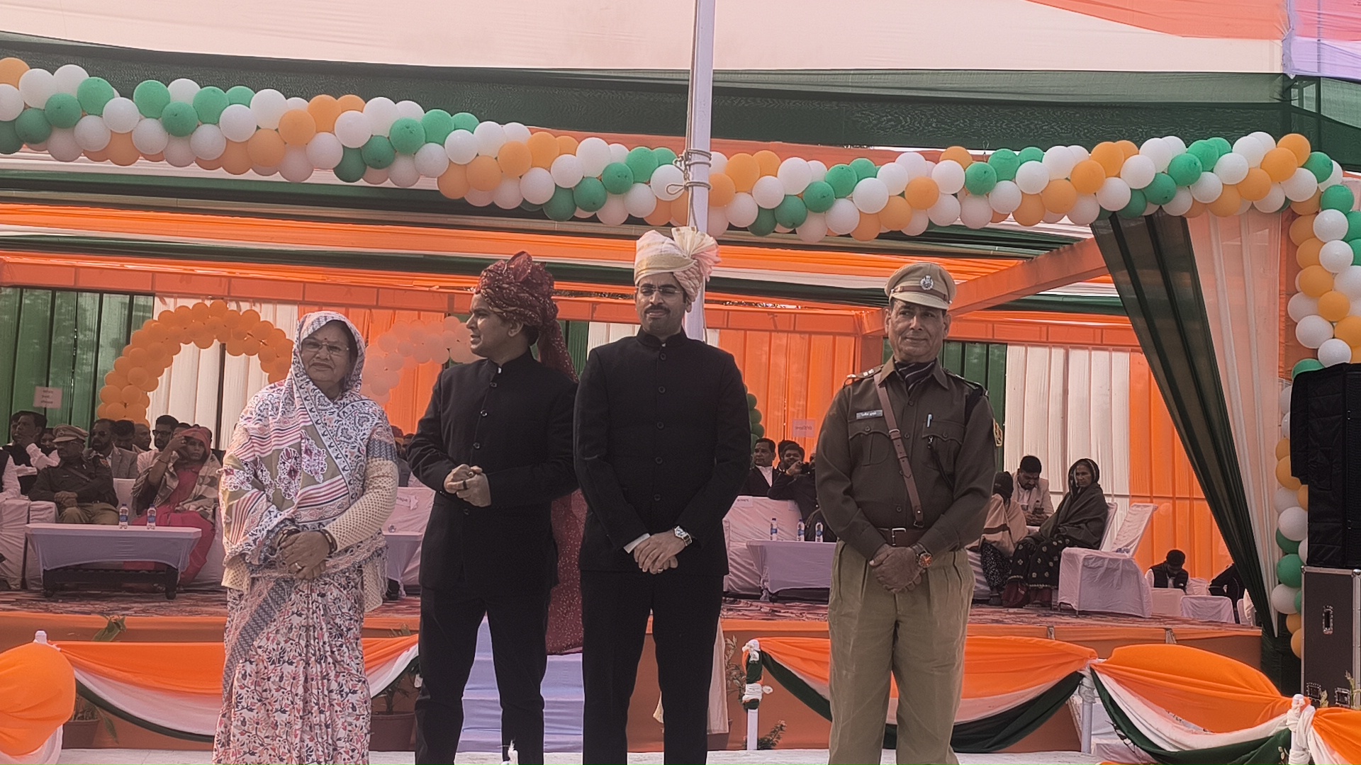 सलूम्बर में देशभक्ति का भव्य उत्सवः 77वें गणतंत्र दिवस पर कलेक्टर अवधेश मीना ने फहराया तिरंगा, 54 प्रतिभाएं हुईं सम्मानित राजकीय उच्च माध्यमिक विद्यालय खेल मैदान में हुआ गरिमामय आयोजन, मार्च पास्ट व सांस्कृतिक प्रस्तुतियों ने मोहा मन