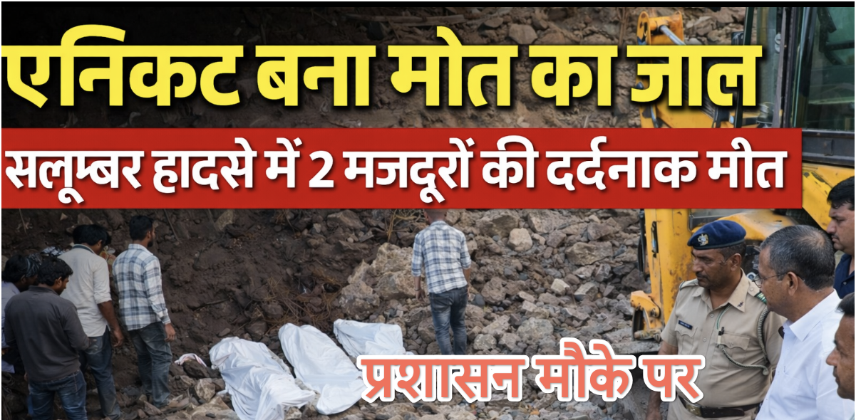 सलूम्बर जिले की ईसरवास ग्राम पंचायत के अंतर्गत मानपुरा क्षेत्र में निर्माणाधीन एनिकट कार्य के दौरान बुधवार शाम एक बड़ा हादसा हो गया। एनिकट निर्माण कार्य अचानक ढह जाने से एक ही गांव के दो मजदूरों की मौके पर ही मौत हो गई, जबकि तीन मजदूर गंभीर रूप से घायल हो गए।