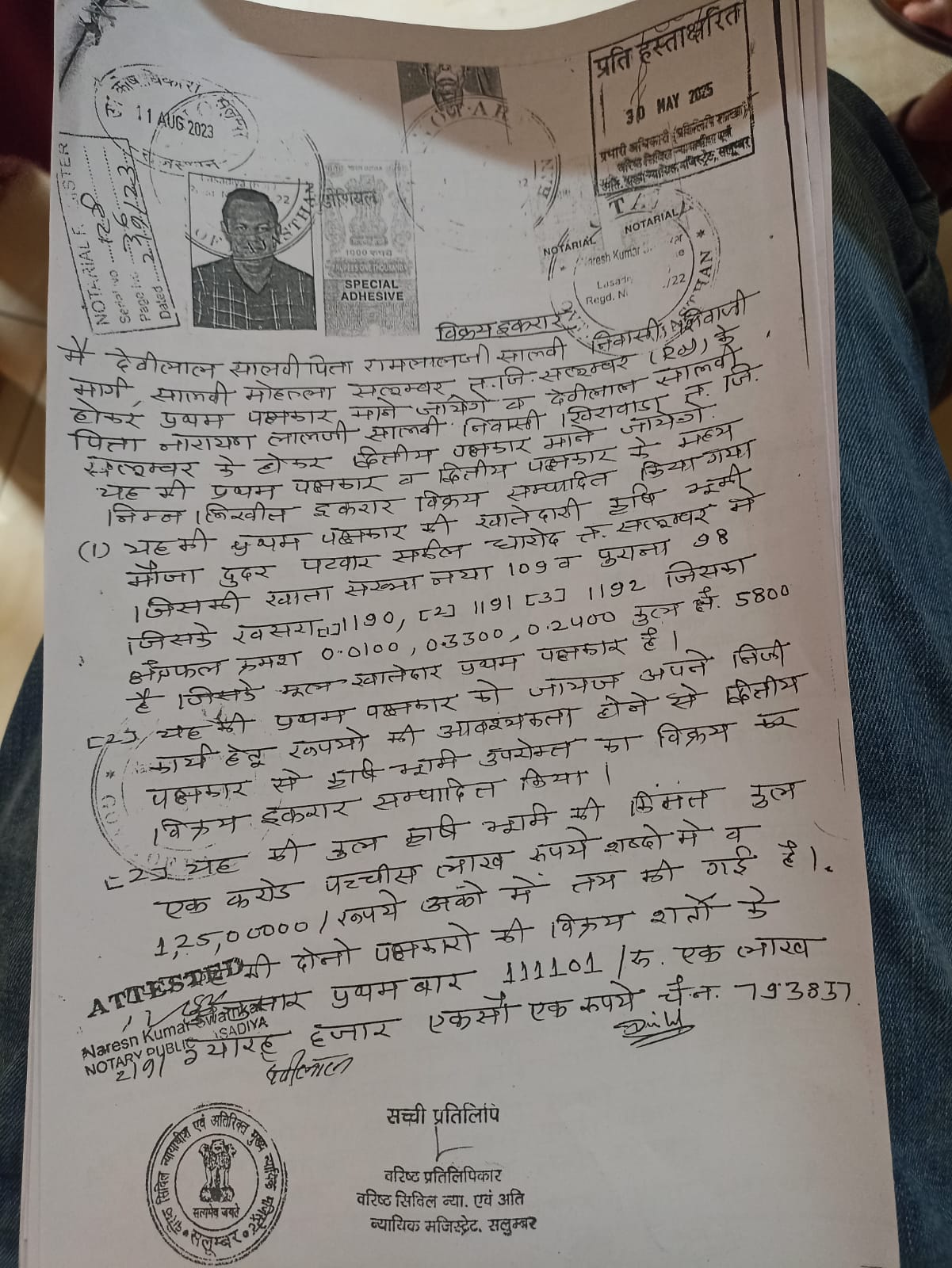 सलूम्बर। जिले में जमीन सौदे से जुड़ा एक गंभीर और सनसनीखेज मामला सामने आया है। न्यायालय की स्पष्ट रोक (स्टे) के बावजूद भूमि की प्लानिंग कर आवासीय व