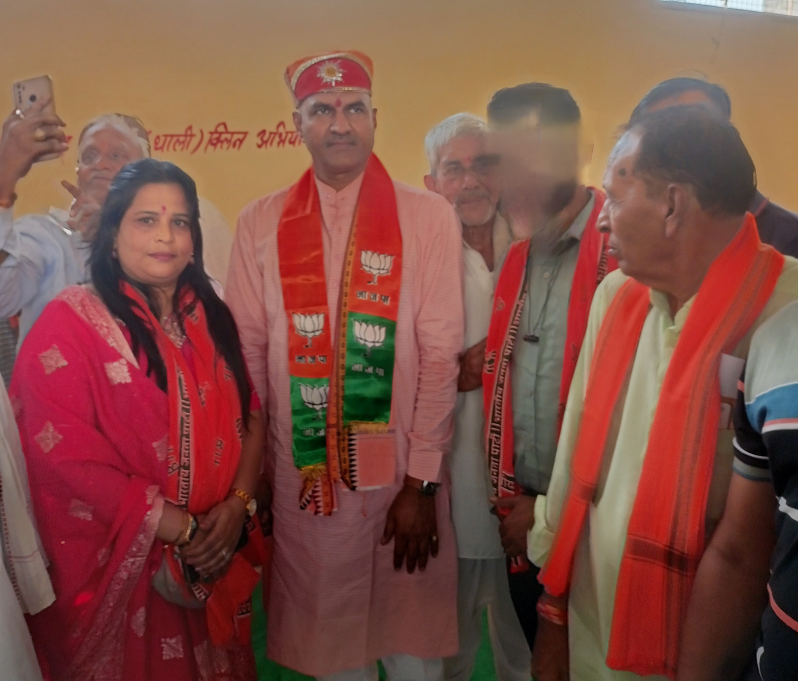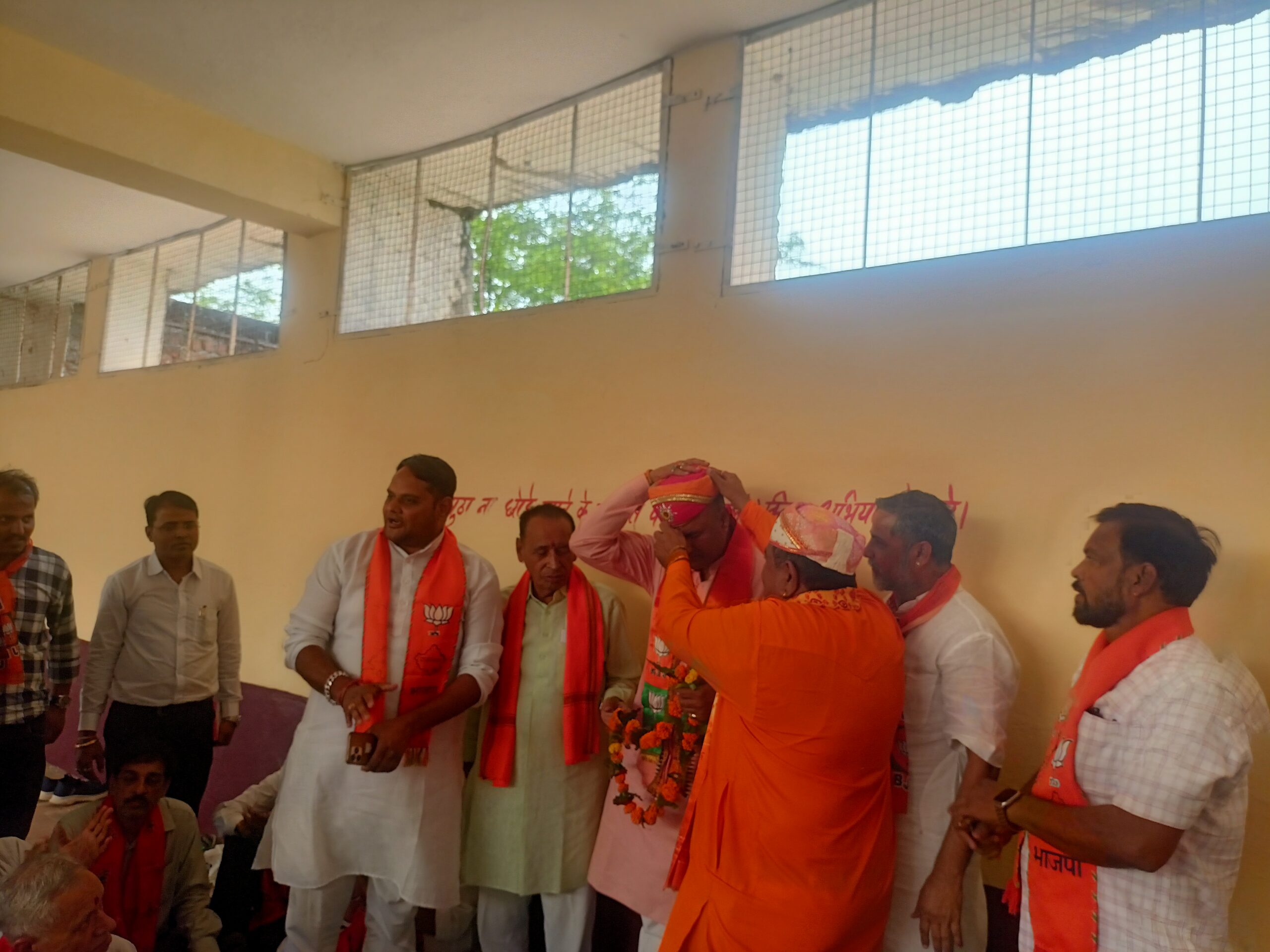 उपचुनाव को लेकर सलूंबर विधानसभा के सलूंबर क्षेत्र में बी जे पी प्रत्याशी अमृत लाल पत्नी शांता मीणा के जनसंपर्क कार्यक्र में बी जे पी नेता ने जनसंपर्क केकार्यक्रम को संबोधित कर के भारतीय