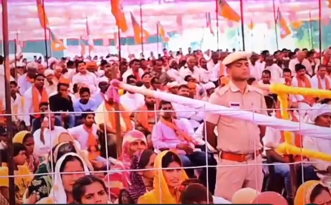 सराड़ा चावंड में जनता का अभिवादन करते, सभा में उपस्थित लोग, सभा उपचुनाव प्रचार के आखिरी दिन चावंड पहुंचे सीएम भजनलाल शर्मा मुख्यमंत्री