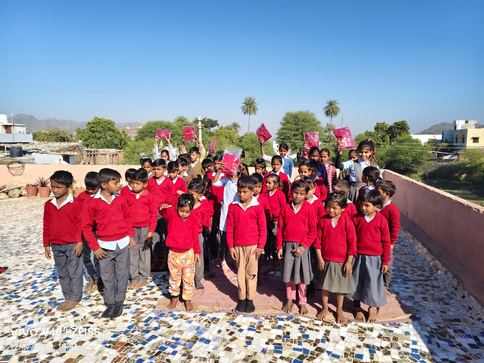 किसान भवन एवम धर्मेंद्र चौबीसा हितेश पटेल हेमंतजी चोबीसा दीपक जैन देवेश टेलर सौरभ वशिष्ठ अविनाश चोबीसा की तरफ से 108 स्वेटर मोजे वितरित किए गए