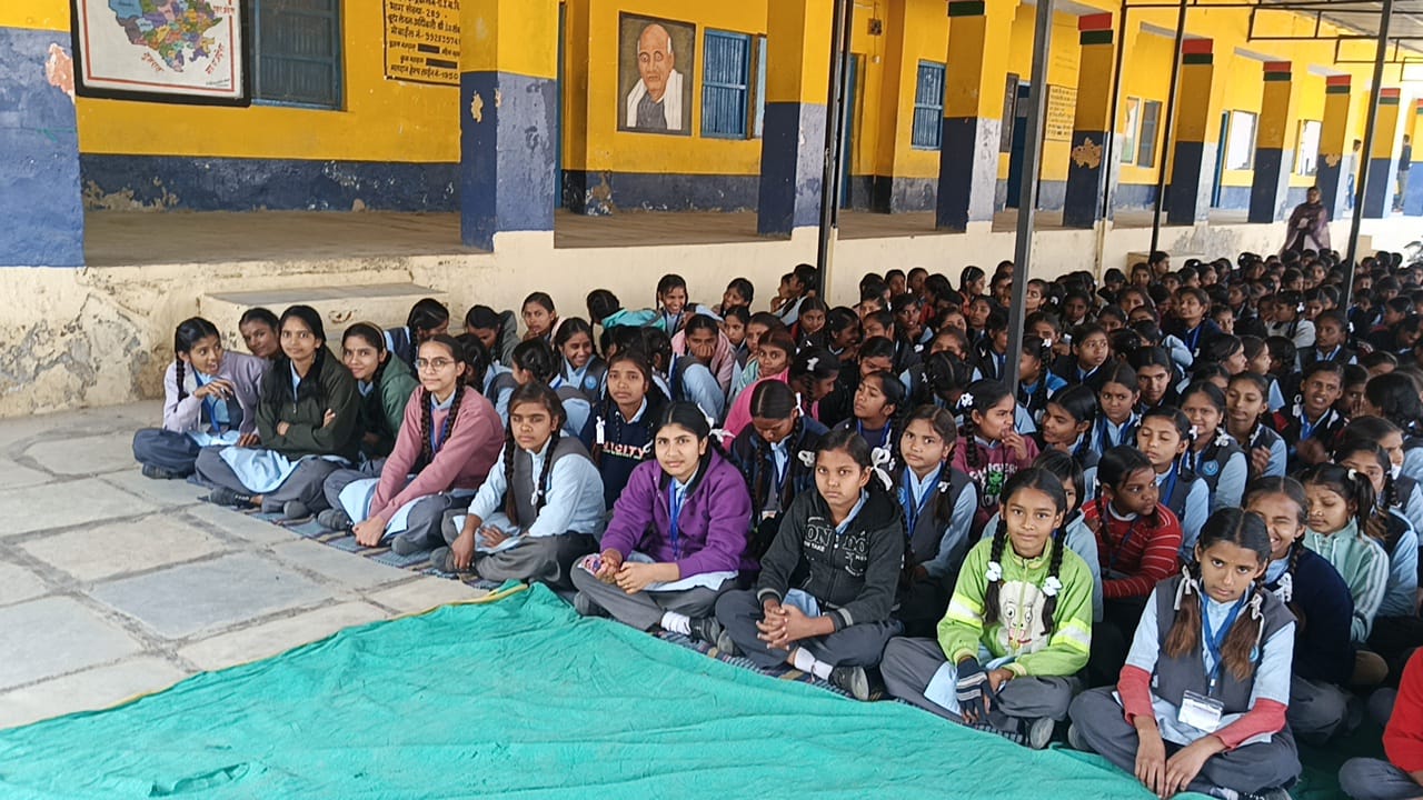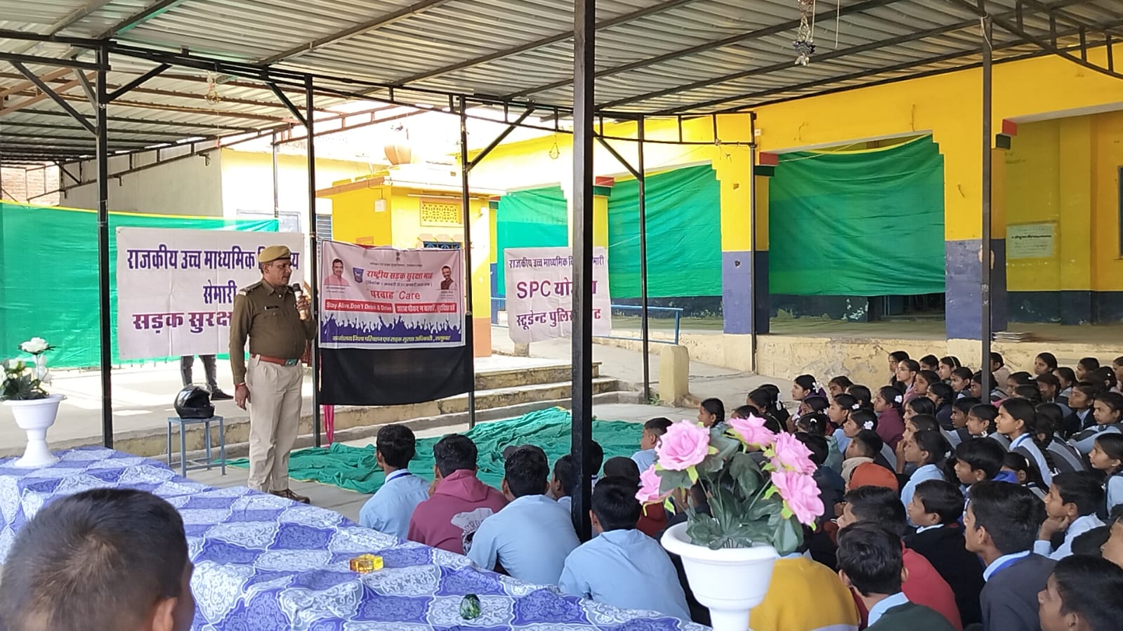 विद्यालय सेमारी में सलुम्बर जिला आर.टी.ओ.अधिकारी राजेश पाठक के सानिध्य में सड़क सुरक्षा एवं