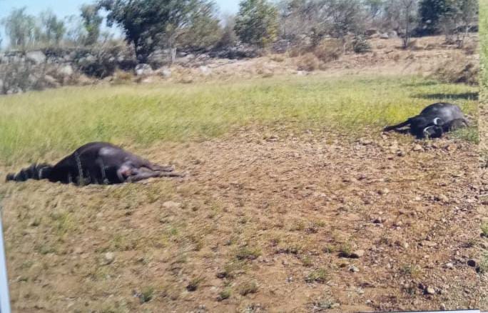सलूम्बर जिले के भबराना में 11 केवी तार टूटने से दो भैंसों की मौत भबराना में विधुत के तार टूटने के दो भैंसों की हुई मौत। यह भैंसे भबराना निवासी महेंद्र सिंह पिता लक्ष्मण सिंह पोलवाड़ा की थी। भैंसे खेतों में घास खा रही थीं कि अचानक से बिजली के 11