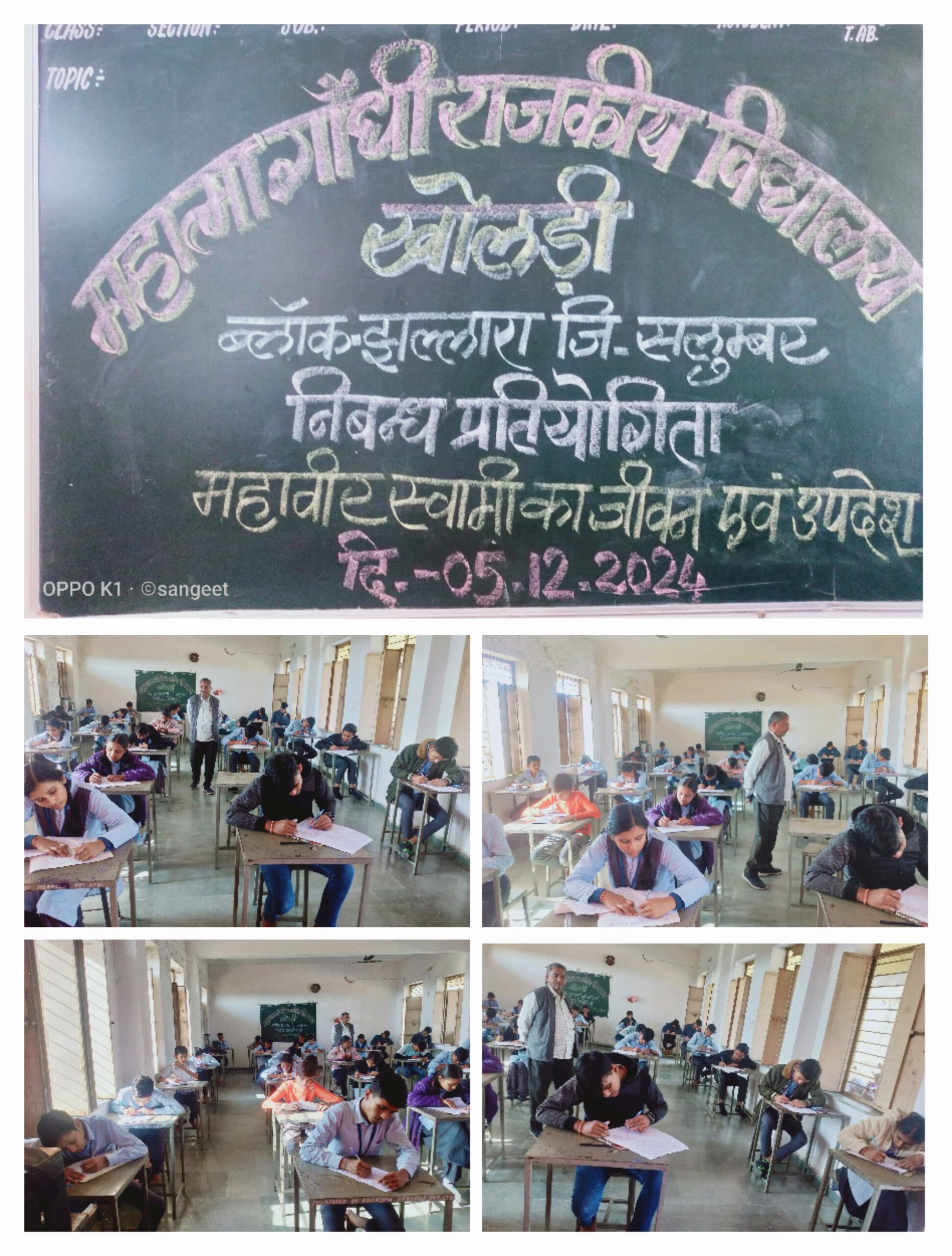 सलूम्बर जिले में खोलडी में भगवान महावीर के 2550 वे निर्वाण वर्ष के उपलक्ष में समग्र राजस्थान में अध्यात्म परिवार एवं शिक्षा विभाग राजस्थान के संयुक्त तत्वाधान में आयोजित निबंध प्रतियोगिता में भाग लेकर सलूंबर जिले में हिमांशु