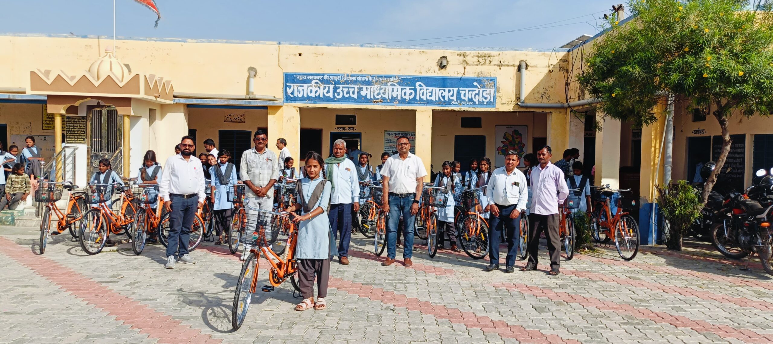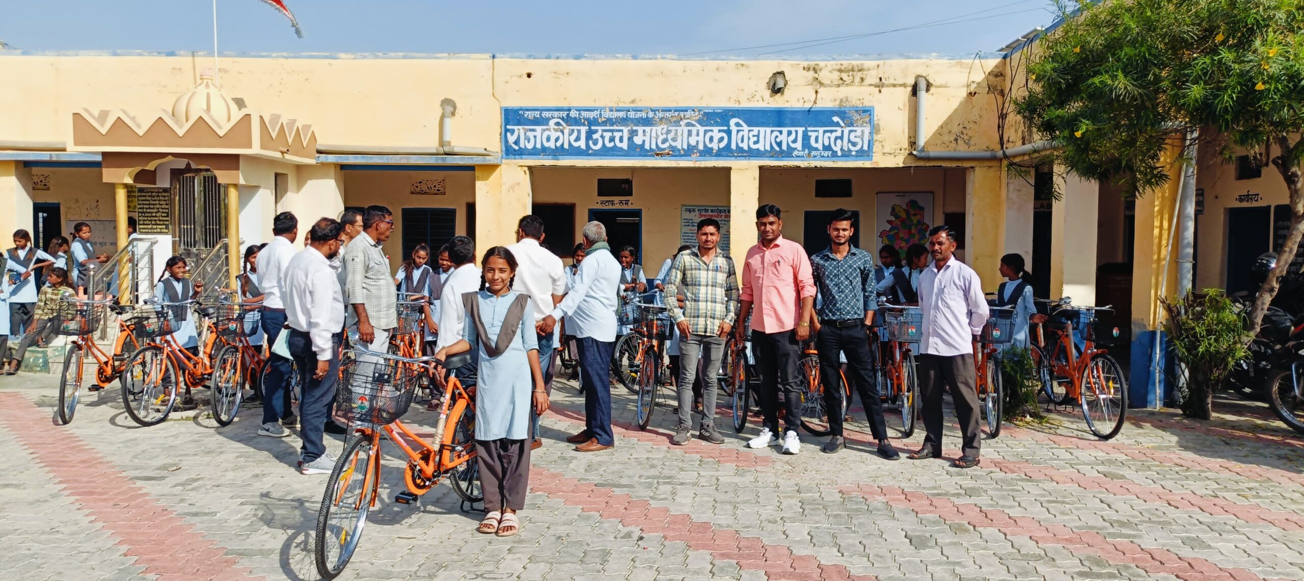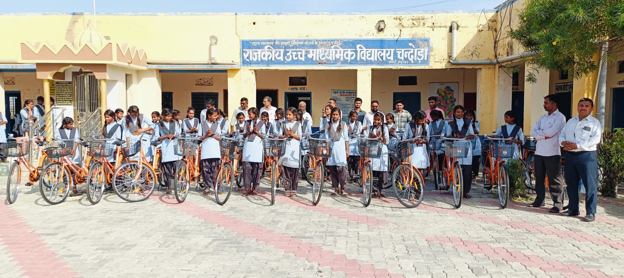 चंदोड़ा में निशुल्क साइकिले पाकर खिले बालिकाओं के चेहरे