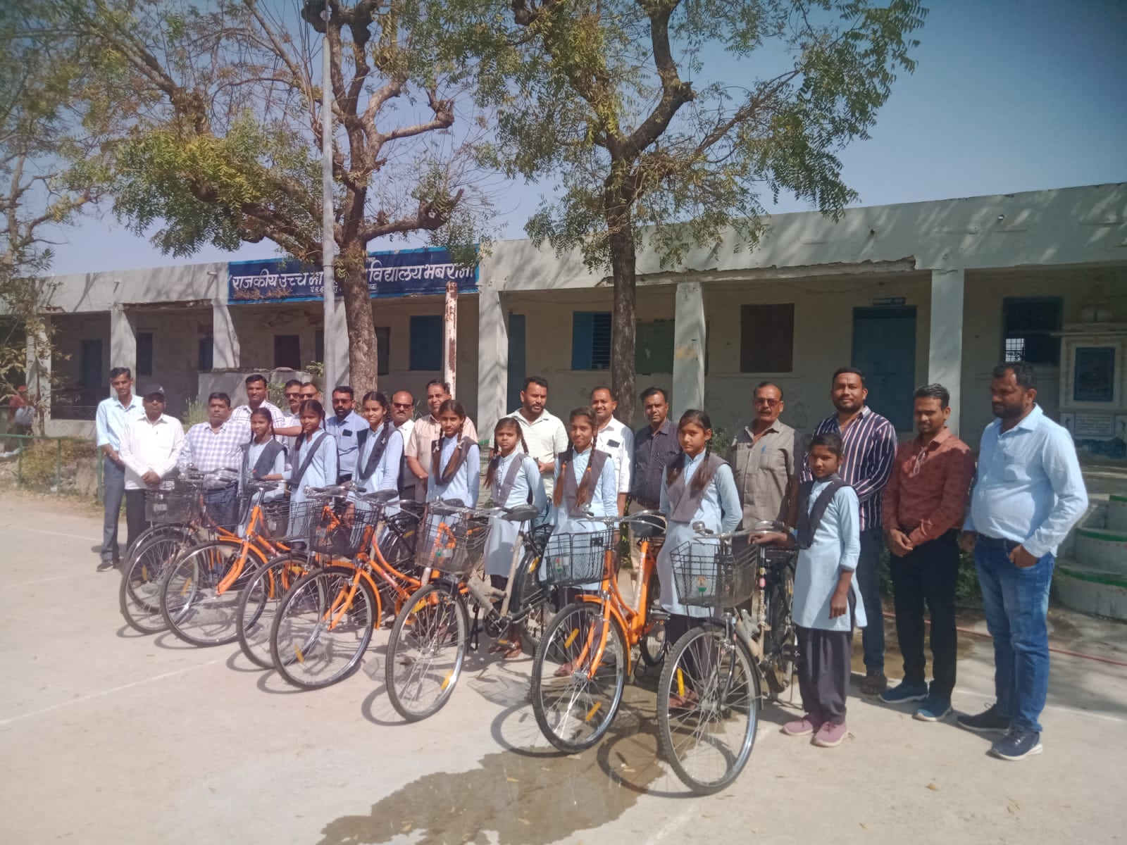 मुख्यमंत्री निःशुल्क साइकिल वितरण योजना के तहत राजकीय उच्च माध्यमिक विद्यालय भबराना में की गई साइकिल वितरित