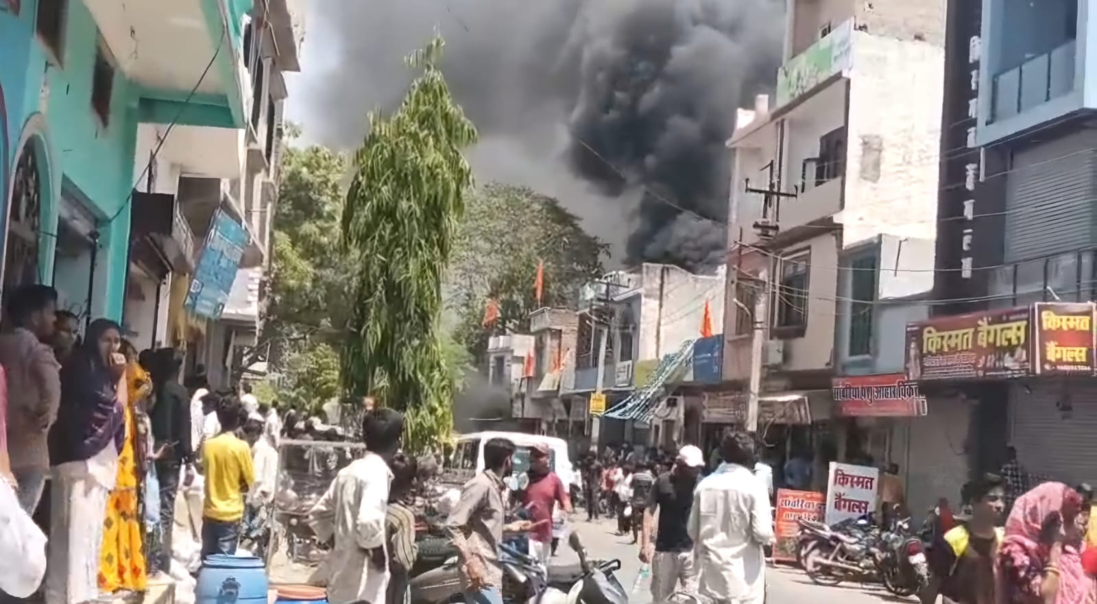 मशक्कत के बाद दमकल विभाग की फायर टीम ने आग पर काबू पाया और विकराल हुई आग की लपटों के साथ उठें धुंए का गुबार आसमान में दिखने लगा,घटना की सूचना पर