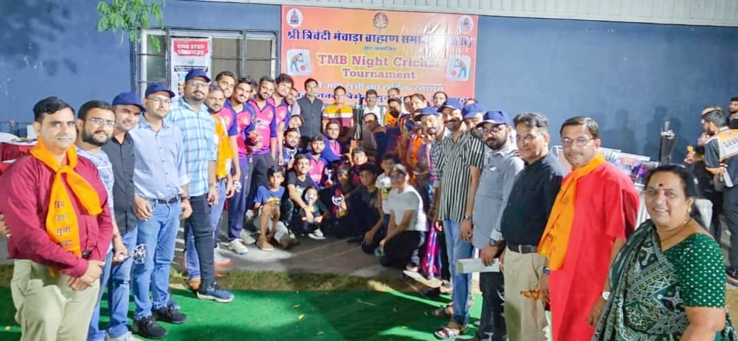 9 व्यास ने 10 बॉल पर 27 रन,वही बरोठी के रितेश व्यास ने 3 ओवर में 2.67 की इकोनॉमी रेट से तेज तर्रार गेंदबाजी करते हुए 8 रन देकर 2 विकेट हासिल किए,बरोठी ने टीएमबीएस अहमदाबाद को 6 विकेट सेे हराकर कप पर कब्जा जमाया । कार्यक्रम की अध्यक्षता नगर इकाई उदयपुर अध्यक्ष चंद्रशेखर व्यास ने की। मुख्य अतिथि जिला आबकारी अधिकारी राजसमंद लोकेश जोशी,विशिष्ट अतिथि डॉ शैलेन्द्र पण्ड्या पूर्व सदस्य राजस्थान बाल आयोग,हेमंत आमेटा पूर्व नर्सिंग अध्यक्ष,चंद्रगुप्त व्यास,त्रिमेस महिला अध्यक्षा निवेदिता व्यास,युवाध्यक्ष मनीष उपाध्याय,मनीष जोशी,हसमुख पानेरी थे। प्रारंभ में चार दिवसीय प्रतियोगिता का प्रतिवेदन प्रस्तुत करते हुए खेल मंत्री राहुल वाय जोशी ने बताया कि इस प्रतियोगिता में त्रिमेस जवास चौखला के खेरवाड़ा,जवास,बरोठी,अहमदाबाद,मगवास,उदयपुर लीजेंड्स सहित 6 गांवों के 90 क्रिकेट खिलाडिय़ों ने भाग लिया तथा अनुशासन के साथ अपने उत्कृष्ट खेल का प्रदर्शन किया। अतिथियों ने प्लेयर आफ द मैच रितेश व्यास,प्लेयर ऑफ द टूर्नामेंट रितेश व्यास,सर्वश्रेष्ठ गेंदबाज झलक उपाध्याय,सर्वश्रेष्ठ बल्लेबाज रितेश व्यास,सर्वश्रेष्ठ फील्डिंग प्रतीक जोशी, सर्वश्रेष्ठ विकेटकीपर मंथन जोशी, इमर्जिंग प्लेयर विनय व्यास, अंपायर, स्कोरर,कमेंटेटर,विजेता एवं उप विजेता को पारितोषिक दिए गए,साथ ही विजेता टीम को 7500 रू और उप विजेता टीम को 5100 रू की नगद राशि भी दी। महिला कार्यकारिणी व स्व. सुभाष व्यास की स्मृति में विजेता टीम को 1100 -1100 एवं उपविजेता टीम को 501-501 की नकद राशि इनके द्वारा दी गई। मुख्य अतिथि जोशी ने इस अवसर पर संबोधित करते हुए।प्रतियोगिता आयोजन के लिए आयोजन कमेटी व सभी त्रिमेस बंधुओं का आभार जताया। उन्होंने कहा कि खेलों से जीवन का विकास होता है तथा खेल को खेल की भावना से खेलने पर आपसी प्रेम, सद्भाव,अनुशासन में वृद्धि होती है। उन्होंने विजेता,उपविजेता टीम व अन्य खिलाडिय़ों को अपने बेहतर प्रदर्शन के लिए बधाई दी। साथ ही उपस्थित युवा एवं समाजजनों से अपने अच्छे खेल से देश एवं समाज का नाम रोशन करने का आह्ववान किया। आयोजन समिति नगर इकाई उदयपुर युवाध्यक्ष डॉ राहुल व्यास, डॉ पंकज व्यास,तुषार व्यास,जय व्यास,कपिल व्यास,राहुल सी.जोशी, राहुल वाय जोशी,रितेश व्यास ने प्रायोजक,भामाशाह एवं अतिथियों को प्रतीक चिन्ह,उपरणा पहनाकर सम्मान किया। प्रतियोगिता के आय व्यय का ब्यौरा कोषाध्यक्ष कपिल व्यास के द्वारा प्रतियोगिता के समापन पश्चात प्रस्तुत किया गया। कार्यक्रम का संचालन डॉ पंकज व्यास व डॉ राहुल व्यास ने किया ।WhatsApp us