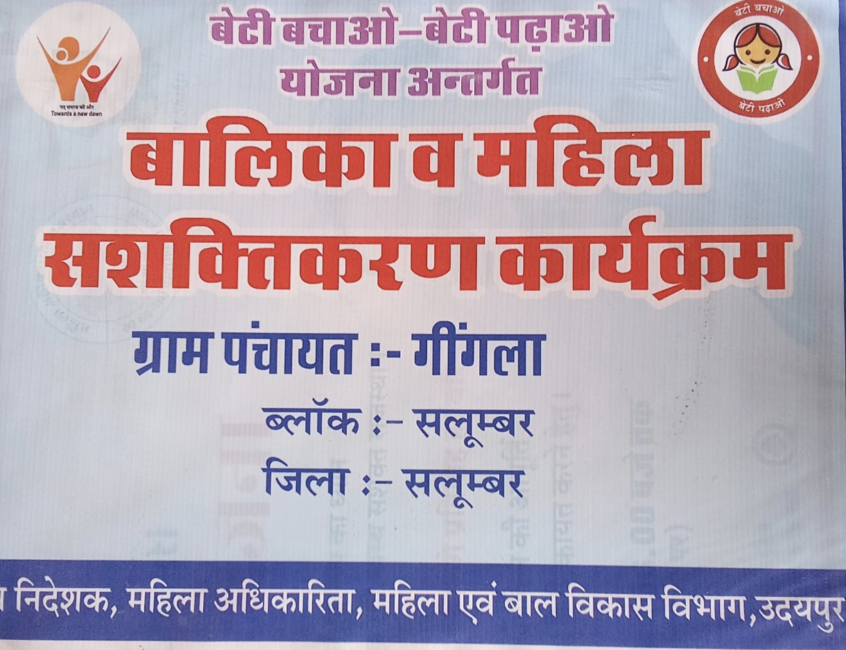 सलूम्बर जिलें में ग्राम पंचायत गीगला साथीनि गीता गर्ग महिला अधिकारीता बाल विकाश परीयोजना आधिकारी सलुम्बर पचता अंजलि मेहता निर्देशा अनुसार समस्त आंगनवाड़ी कार्यकर्ता आसा किशोरी बालीका A.N.M पंचायत L DC पूरा अधिकारी आदि उपा उपस्थित थे A.N.M. भावना L D C राजेन्द्रजी चौबीसी पशुधन प्रभारी प्रसार आधिकारी मांगीलाल बुनकर