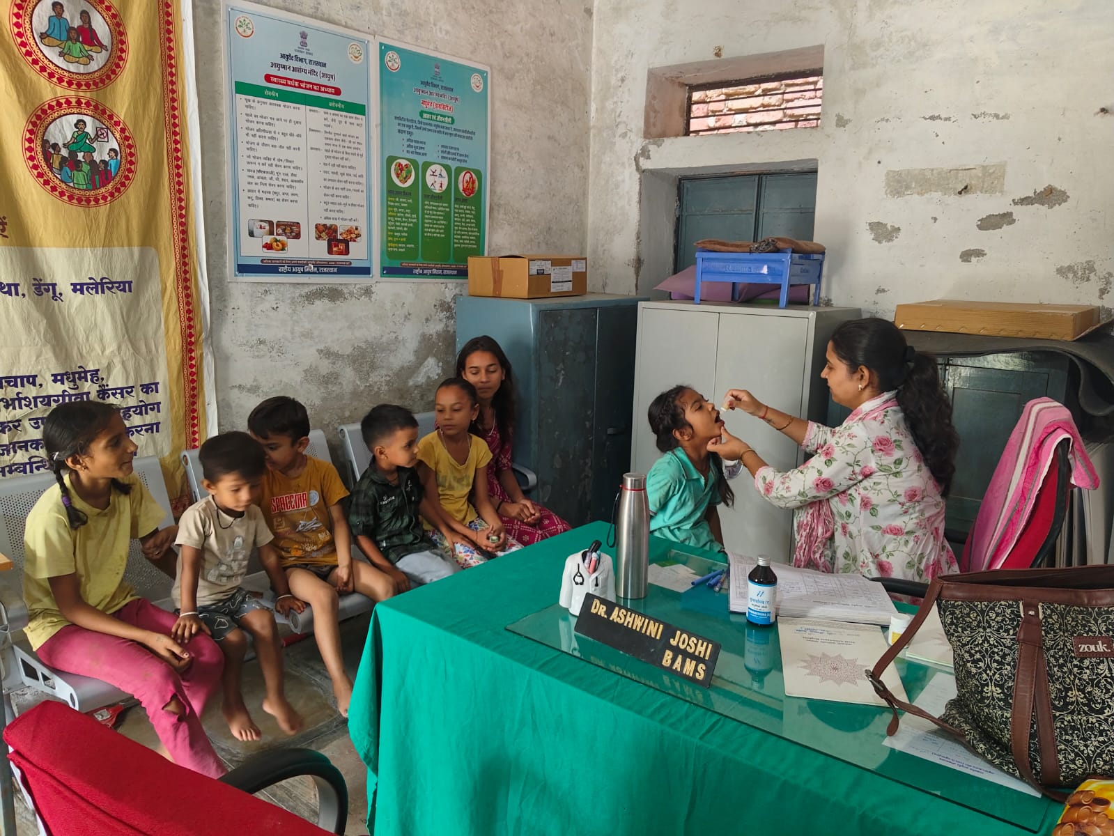 निःशुल्क मधुमेह जांच मौसमी बीमारी स्त्री रोग एवं स्वर्ण प्राशन शिविर संपन्न