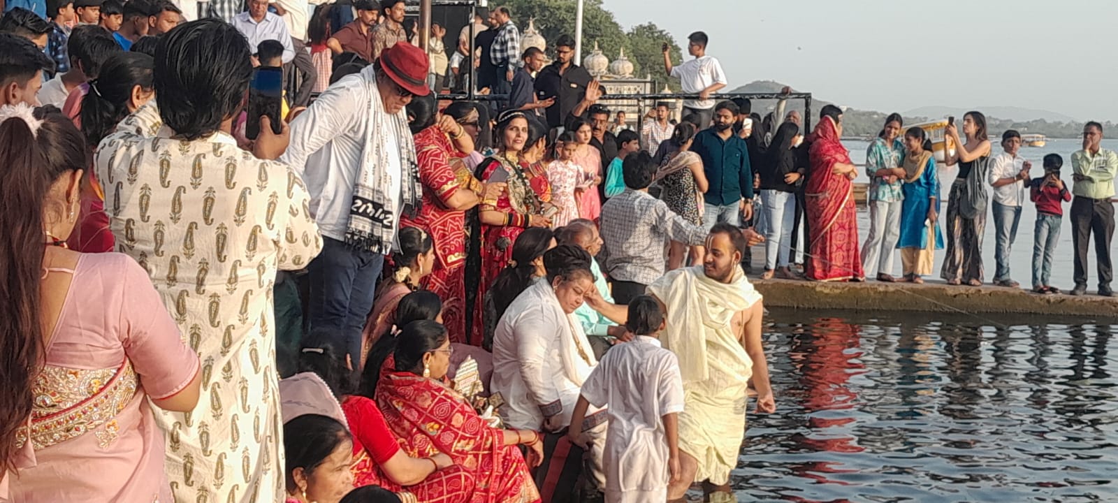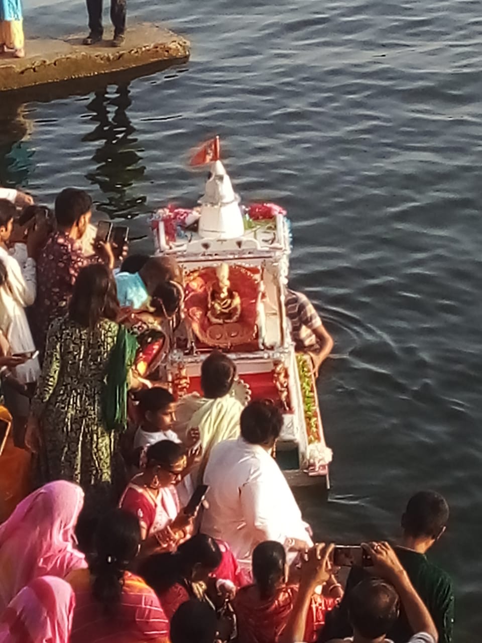 उदयपुर। मेवाड़ सनातन महोत्सव समिति एवं सर्व सनातन समाज उदयपुर के संयुक्त तत्वावधान में श्री श्री श्री 1008 लड्डू गोपालजी का भव्य नाव महोत्सव यमुना महाआरती एवं भजन संध्या का आयोजन गणगौर घाट उदयपुर पर धूमधाम से संपन्न हुआ। कार्यक्रम की शुरुआत मीठारामजी के मंदिर रावजी का हाटा से लड्डू गोपालजी की शोभा यात्रा के साथ शुरू हुई जिसका नेतृत्व संतों एवं महंतों द्वारा किया गया। शोभा यात्रा नगर भ्रमण करती हुई गणगौर घाट पहुंची जहां लड्डू गोपाल जी का नोका बिहार सम्पन्न हुआ एवं भक्तों की उपस्थिति में यमुना महा आरती का आयोजन किया गया। इस अवसर पर भक्ति संध्या का आयोजन भी किया गया जिसमें श्रद्धालुओं ने भजनों और नृत्य के माध्यम से भावविभोर होकर भाग लिया। भजन प्रस्तुति मुकेश महादेव आनंद लोहार एवं सांवरा सेन द्वारा दी गई। कार्यक्रम की अध्यक्षता महंत मेवाड़ महामंडलेश्वर बालसंत नो निधिदास खाकी ने की। उनके साथ महंत हरिदास महंत इंद्रदेव दास एवं महंत श्याम बाबा सहित अनेक संत-महंत उपस्थित रहें एवं महंत द्वारा आरती का नेतृत्व किया गया। कार्यक्रम के मुख्य अतिथि श्रीएकलिंगनाथ राष्ट्रीय संगठन के संस्थापक एवं राष्ट्रीय अध्यक्ष आकाश बागड़ी और अति. मुख्य अतिथि सनराइज हॉस्पिटल डॉ. विनोद पांडे डायरेक्टर डॉ. विनोद पांडे थे। कार्यक्रम के विशिष्ट अतिथि क्षत्रिय स्वर्णकार समाज सेवा समिति के अध्यक्ष गोविंद सोनी जिला मंत्री भाजपा किसान मोर्चा सुरेश वैष्णव एवं मदन सोनी थे। कार्यक्रम में सभी अतिथियों का पगड़ी एवं उपरना ओढ़ाकर स्वागत एवं सम्मान किया गया। यह जानकारी मेवाड़ सनातन महोत्सव समिति के संस्थापक रविराज सोनी द्वारा प्रदान की गई।