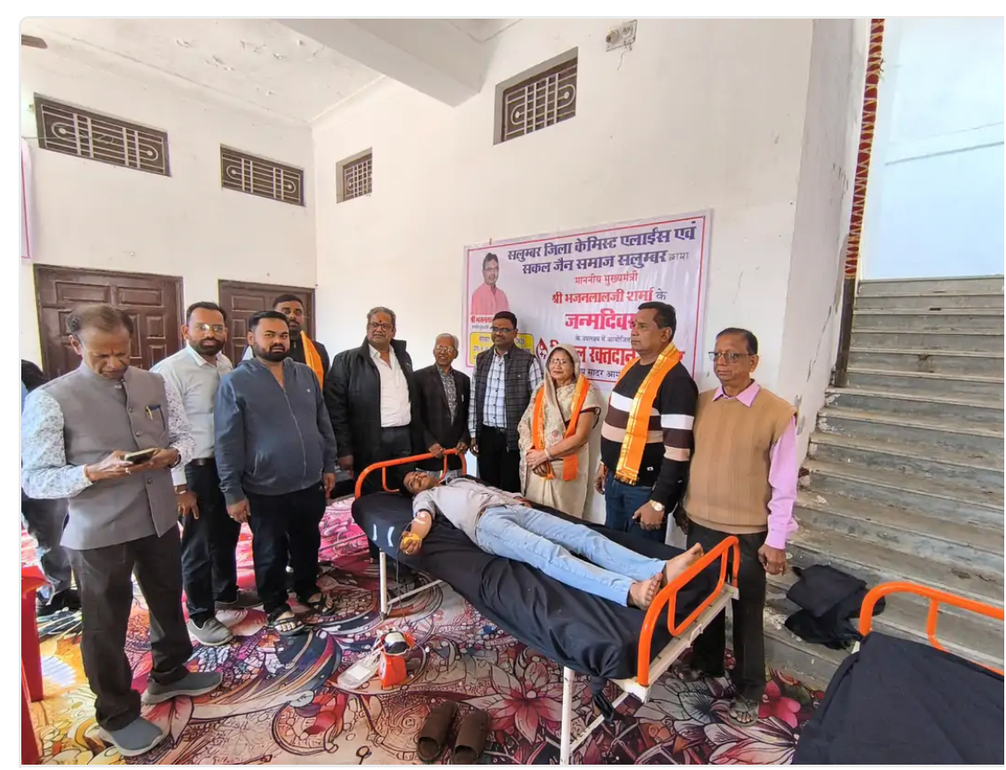 सलूंबर में आचार्य विहर्ष सागर दीक्षा दिवस पर सेवा का संगम मुख्यमंत्री के जन्मदिवस पर रक्तदान महाअभियान, 24 यूनिट रक्त संग्रह