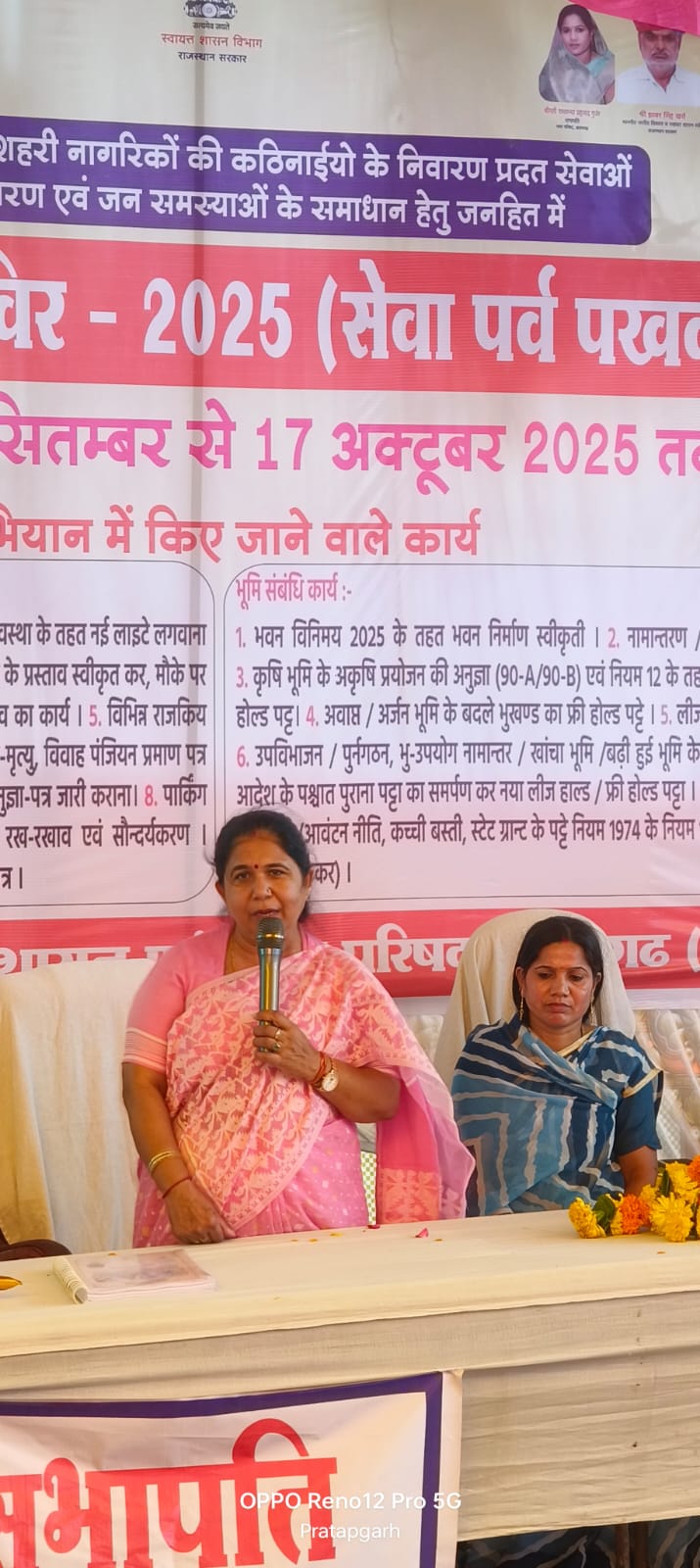 जिला प्रभारी मंत्री ने शिविर की व्यवस्थाओ को देख कर नगर परिषद सभापति राम कन्या गुर्जर और आयुक्त जितेन्द्र मीना की सराहना की lइससे पूर्व नगर परिषद में सभा पति रामकन्या गुर्जर और पार्षदो ने मंत्री मंजू बाघमार का माला पहना कर बुके भेट कर उपरणा ओढ़ा कर स्वागत किया l